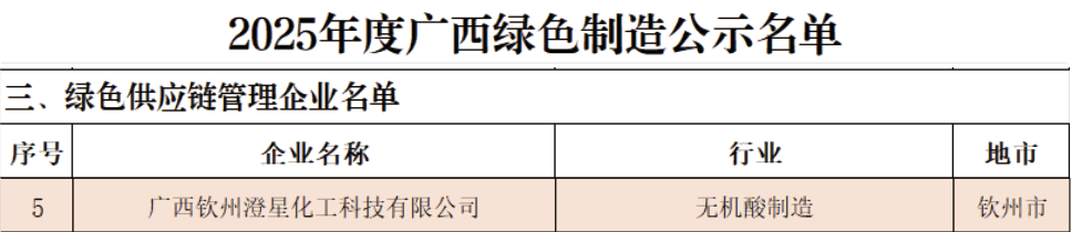 喜报 | 钦州澄星入选2025年度省级绿色供应链管理企业名单