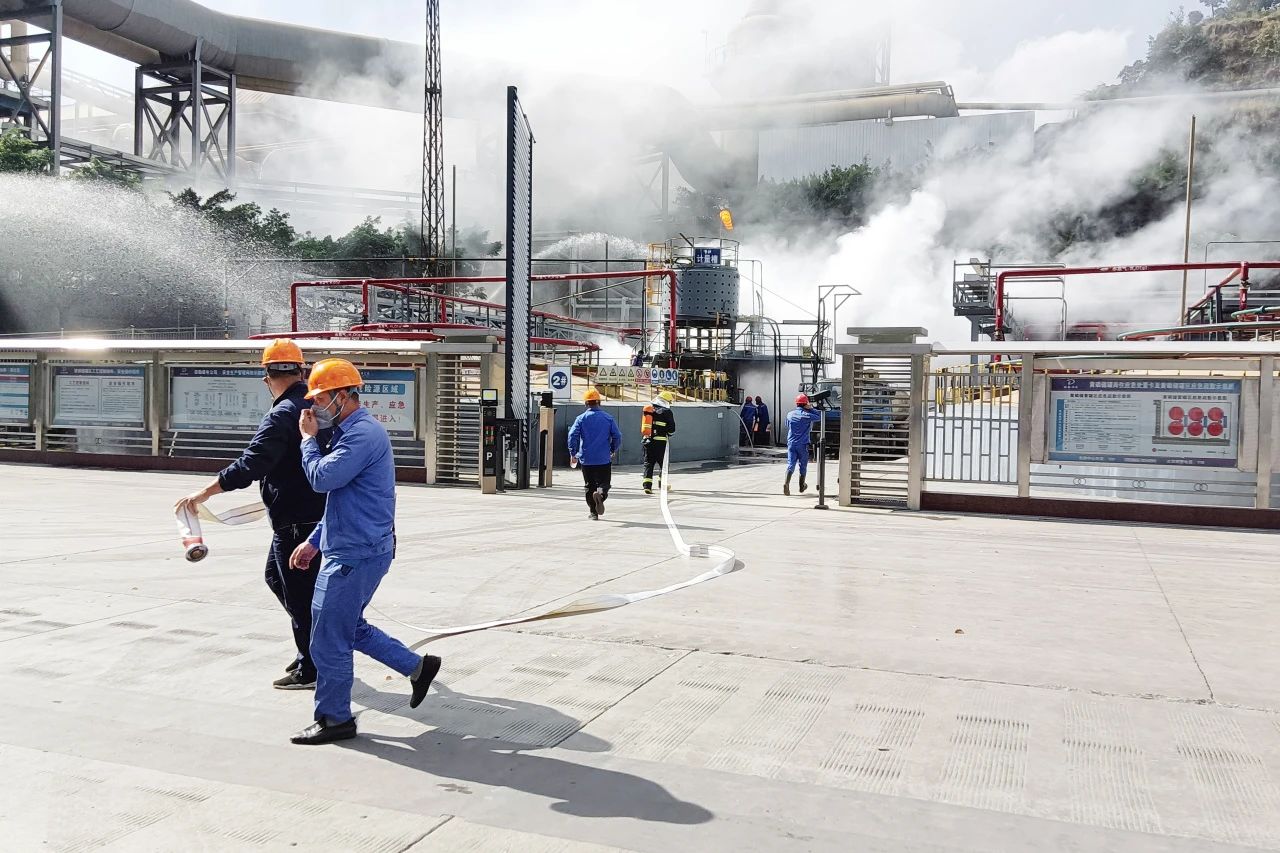 11月23日,开展黄磷罐区消防演练,旨在提高员工对突发火灾事故的快速反应能力及处置能力,明确各应急小组应急流程、加强各应急小组协作能力。